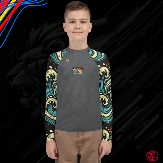 LION Sleeve Cracked Pepper Youth Rash Guard – UPF 50+ Protective Kids Sportswear