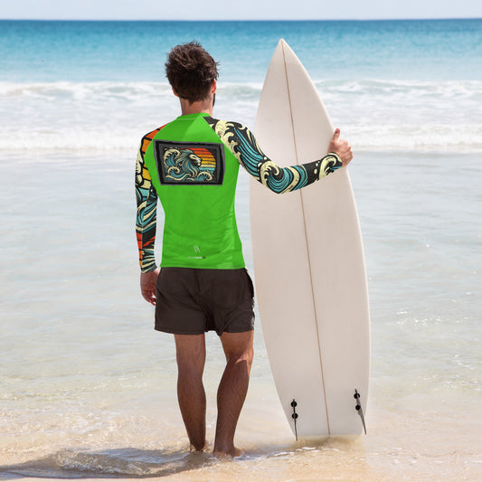 Lion Sleeve Harlequin Green Men's Rash Guard