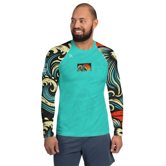Lion Sleeve Turquoise Blue Men's Rash Guard