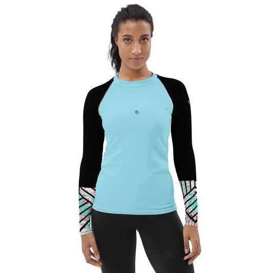HAWAII Scratch White/Turquoise Women’s Rash Guard – UPF 38+ Stylish Protection for Active Women