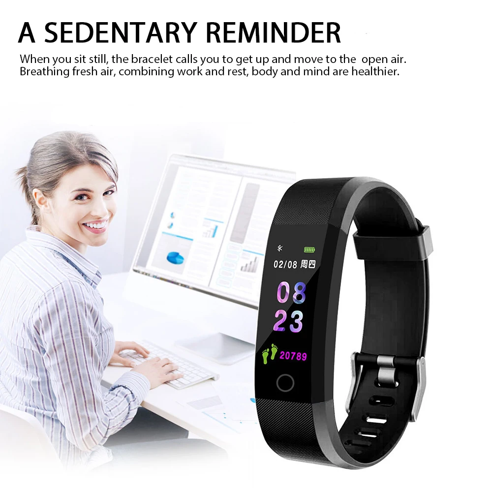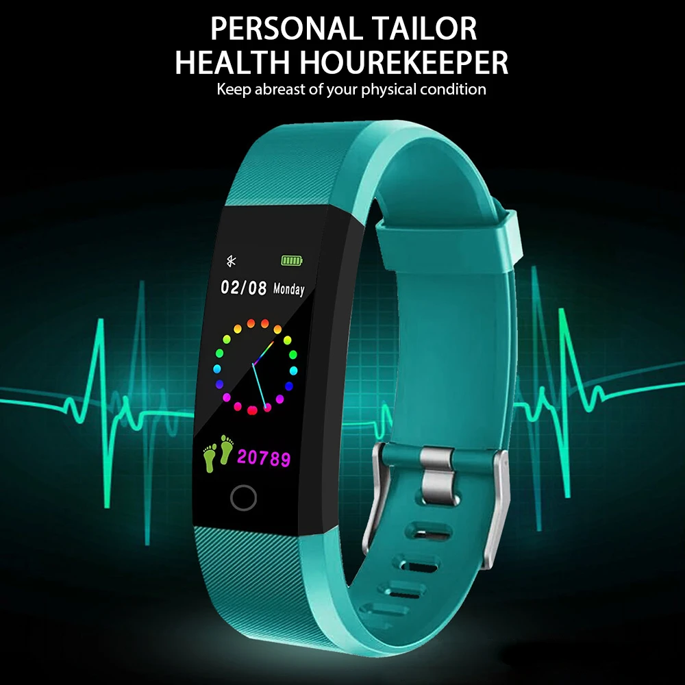 Men Women Bracelet Colorful screen Smart watch Heart Rate Monitor Blood Pressure Fitness Tracker Waterproof Smartwatch for Sport
